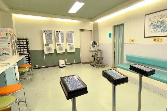 | 当院は薬園台駅の近くにあり、前面道路から手押し車、車椅子、ベビーカーのまま入ることができます。院内の受付待合室、視力室、診察室、検査室も段差のないバリアフリーを実現しており、体の不自由な方、赤ちゃん連れの方、小学生一人でも安心して通院していただいております。 |